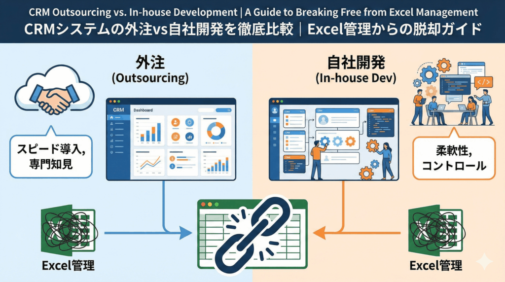 CRMシステムの外注vs自社開発を徹底比較|Excel管理からの脱却ガイド