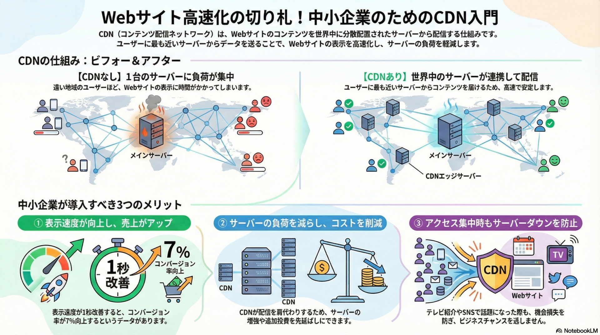 これらの背景から、CDNは大手企業だけでなく、中小企業にとっても必要不可欠な技術へと変化しつつあります。