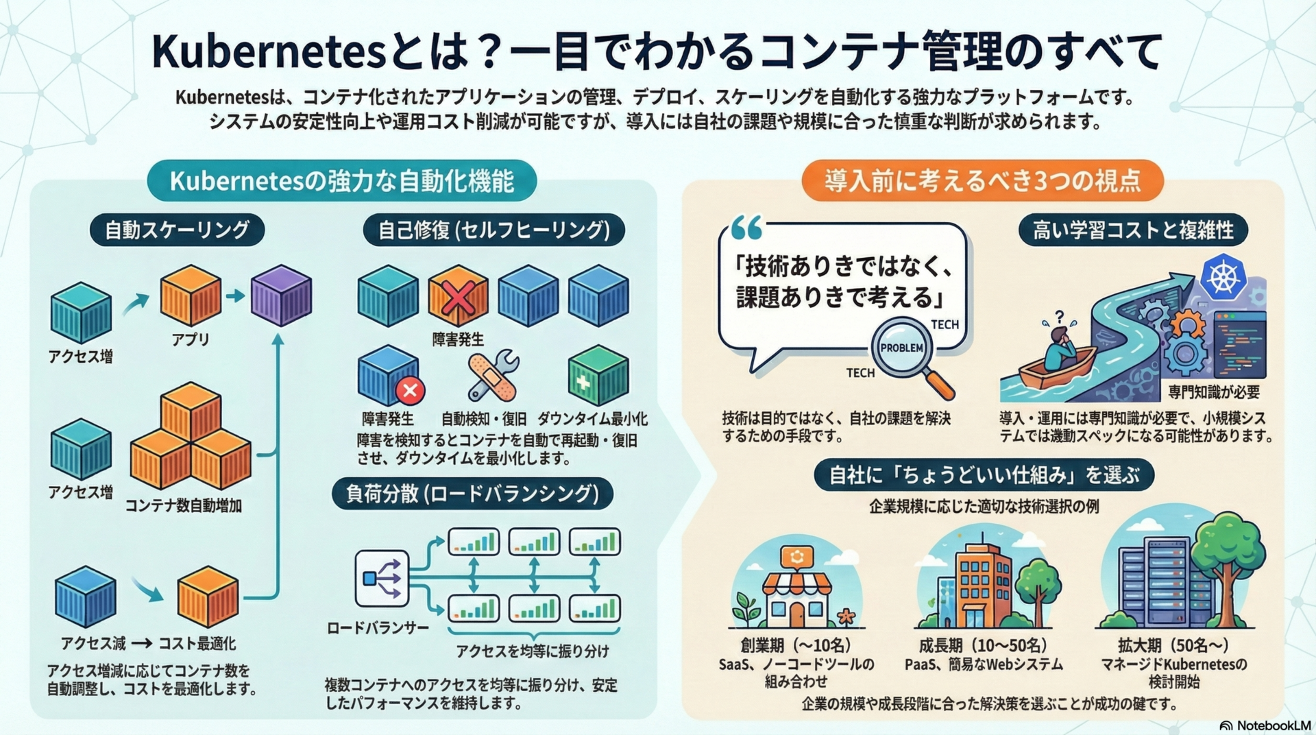 Kubernetesに興味を持った方も、まずは自社の課題を整理することから始めてみてください。その上で、Kubernetesが本当に必要かどうかを判断することをお勧めします。